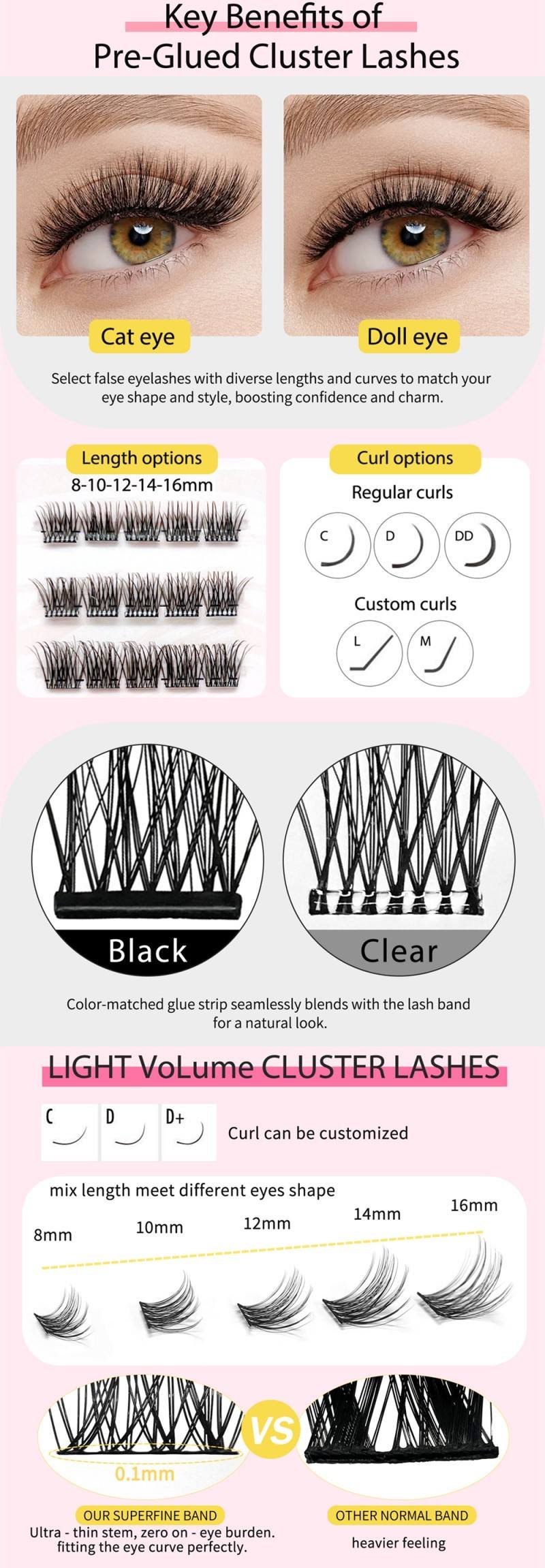 Nome do produto:Pacote de papel para venda por grosso, faça você mesmo, segmentos de pestanas, clusters personalizáveis OEM