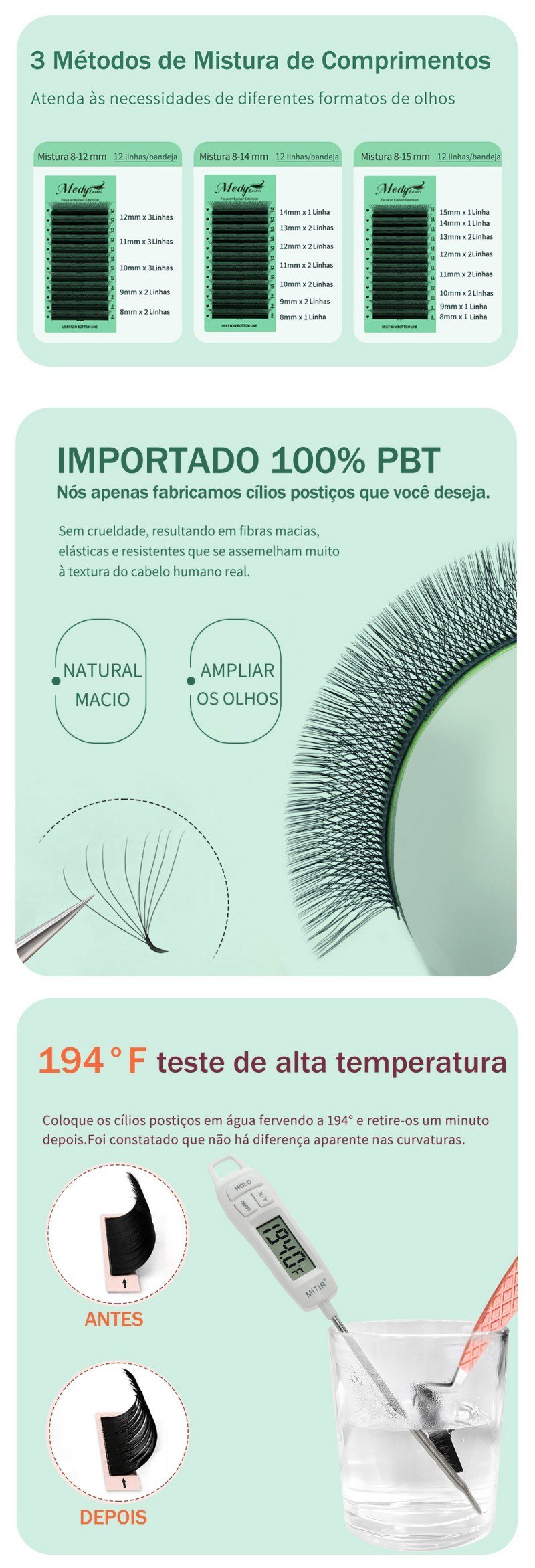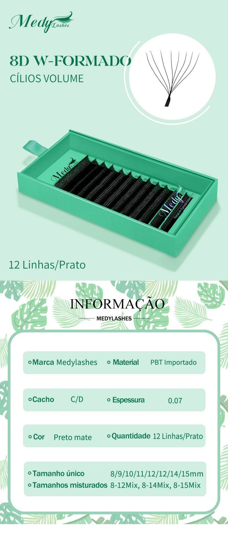 Nome do produto:Pestanas postiças Medylashes 8dw em formato Y, preto e castanho, 2D, duas pontas divididas, pestanas individuais, volume pré-fabricado, maquilhagem em leque