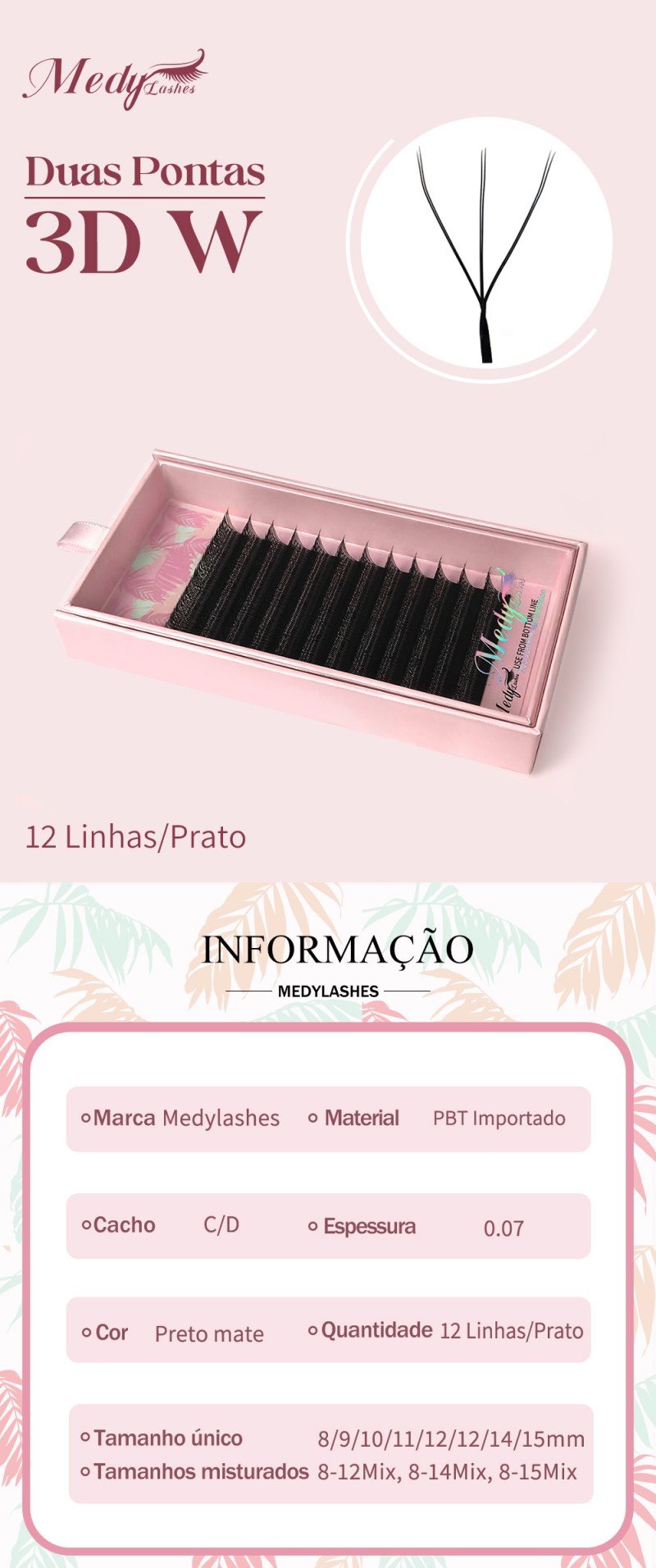 Nome do produto:Medylashes Pontas Duplas 3DW Formato Extensão de Pestanas Maquilhagem Dropshipper 3D W Pré-fabricado Volume Fãs Pestanas Postiças Maquilhagem Suave