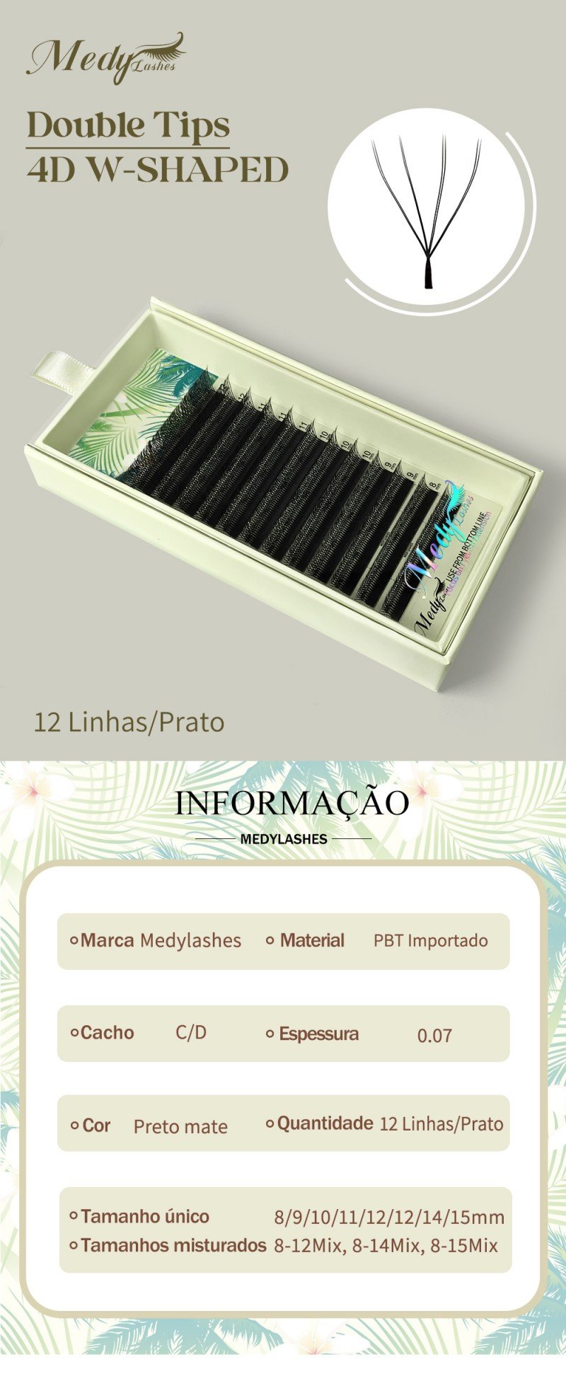 Nome do produto:Medylashes Pontas Duplas 4DW Formato Extensão de Pestanas Maquilhagem Dropshipper 4D W Volume Pré-fabricado Fãs Pestanas Postiças Maquilhagem Suave