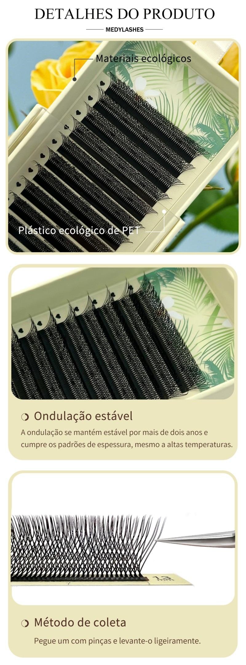 Destaques: As extensões de pestanas artesanais MedyLash Wholesale U YY 3D-8D W Shape oferecem uma suavidade natural e um acabamento ligeiramente mate, fabricadas em vison sintético para maior conforto e elegância. Com opções personalizáveis, incluindo comprimento, curvatura e cor, estas pestanas semi-artesanais atendem a diversas necessidades de beleza. O produto possui certificação CE, garantindo a conformidade com as normas de segurança da UE e a garantia de acesso ao mercado. Com envio rápido via DHL, UPS, FedEx ou TNT, a entrega demora 2 a 6 dias úteis. Estão disponíveis serviços de OEM, ODM e marca própria para personalização da marca.